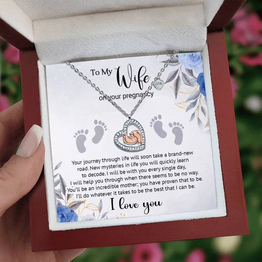 To My Wife on your Pregnancy - Baby Feet Heart Necklace