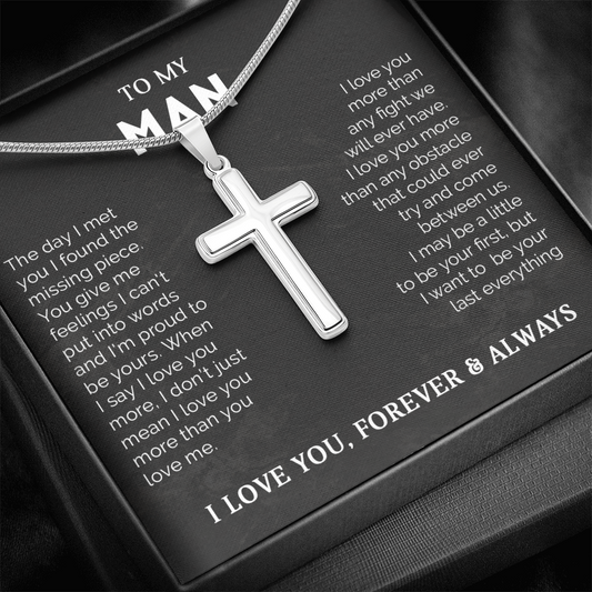 To My Man - Artisan Cross Necklace with Snake Chain