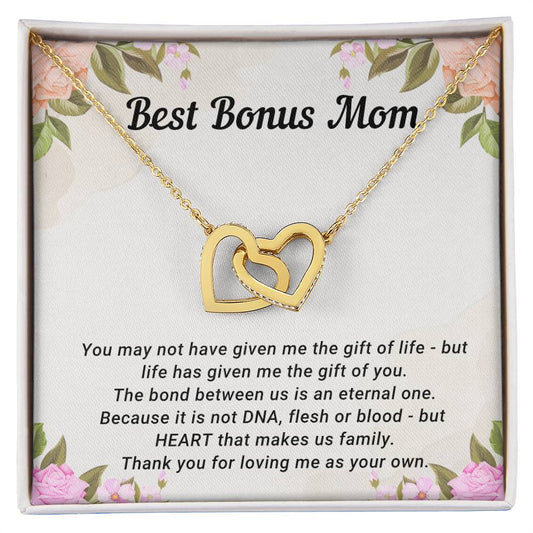TO MY BONUS MOM - MOTHER'S DAY BEST GIFT - INTERLOCKING HEARTS NECKLACE